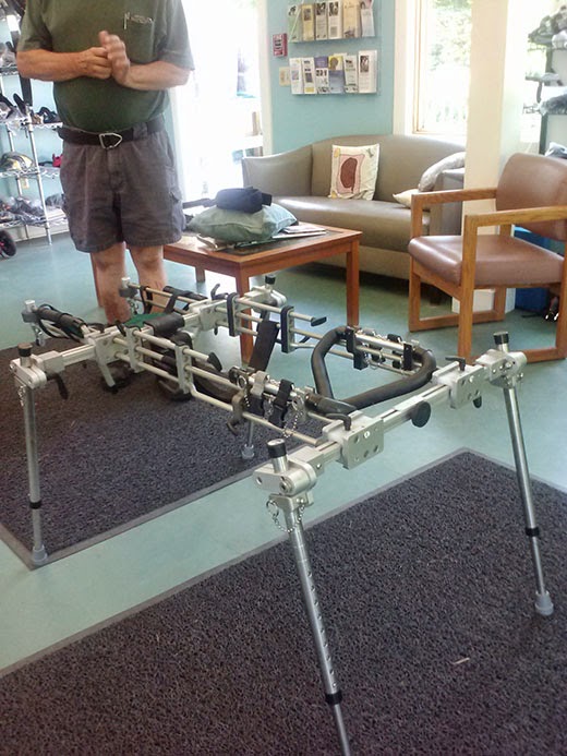 Hospital Clinic “standers”, portable and adjustable to allow a severly weakened or paralyzed pet to passively stand. It serves to elongate the spine, de load joints, & allow for controlled weight bearing.