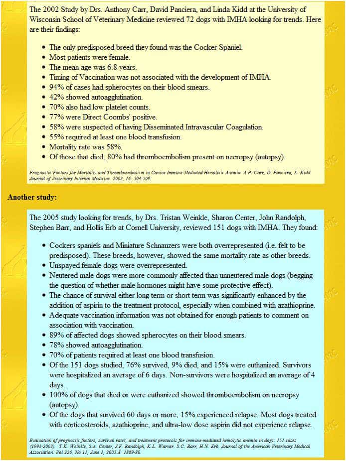 In all honesty, if my dog ever acquired IMHA, I’d be on a consult with the famed Dr. Jean Dodds, Dr. Mahaney, a specialist in the disease, and in regular contact with my dog’s veterinarian.